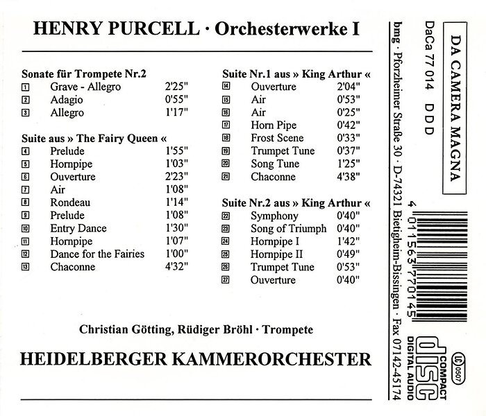 Heidelberger Suiten 1 & 2 King Arthur CD