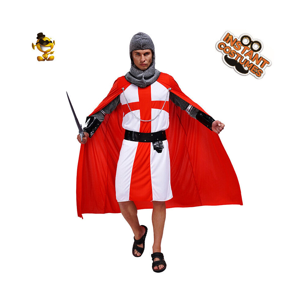 Adults King Arthur Fancy Dress Costume - St George's Cross Tunic + Red Cape + Headpiece + Crown Supporter's Football Outfit Flag Mens Group English Event - L