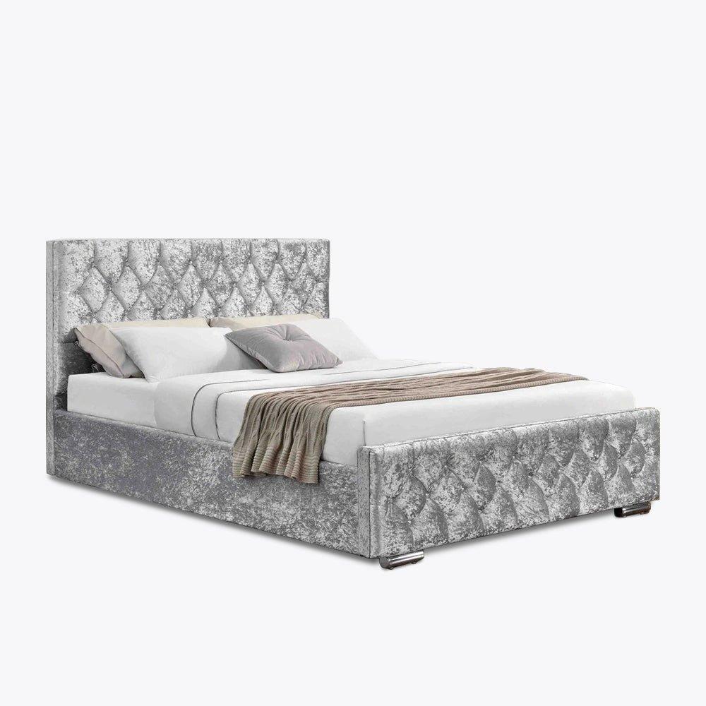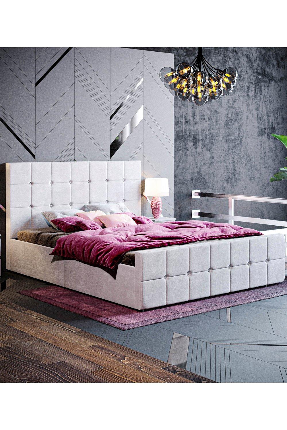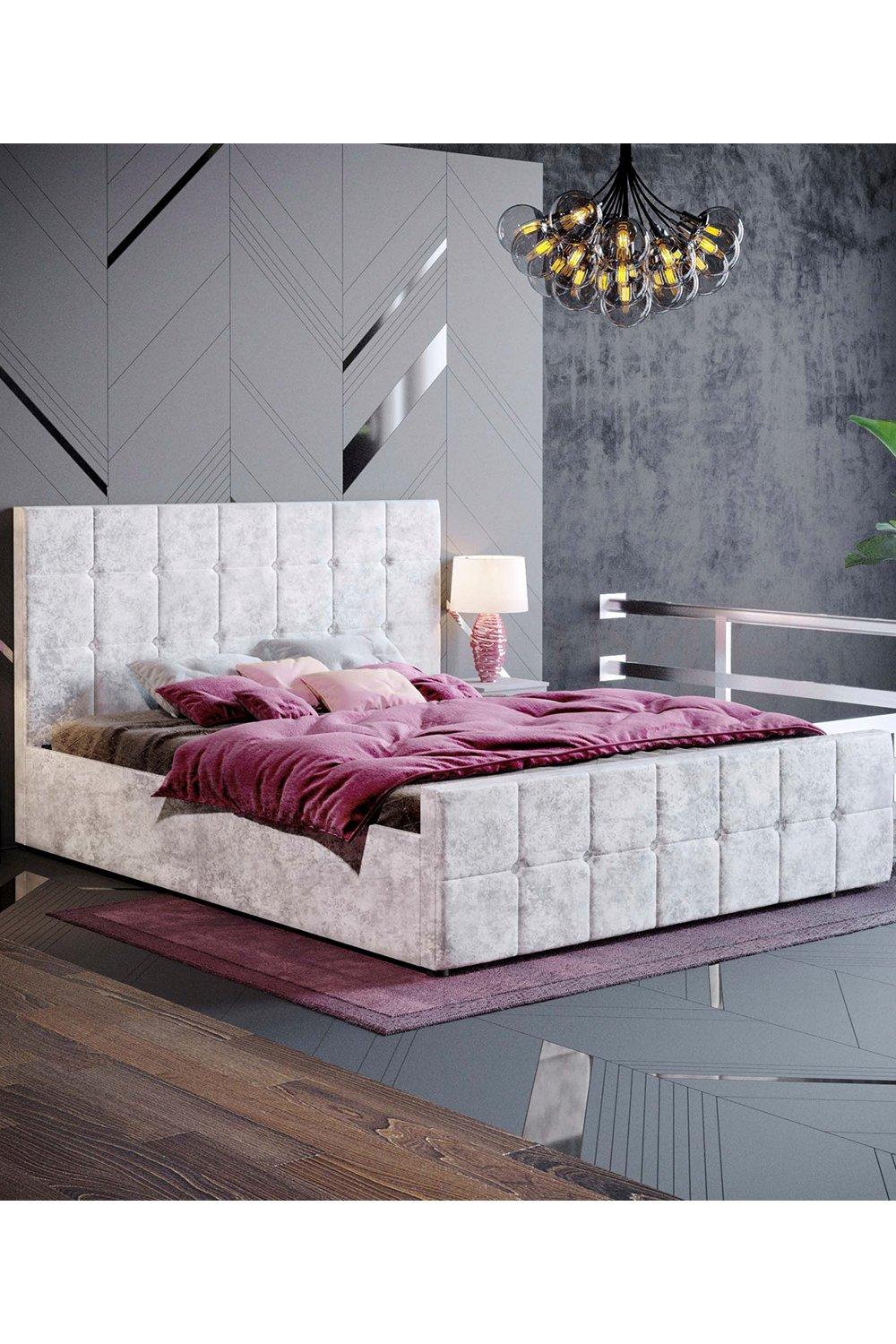 Arya Velvet Silver Super King Ottoman Bed
