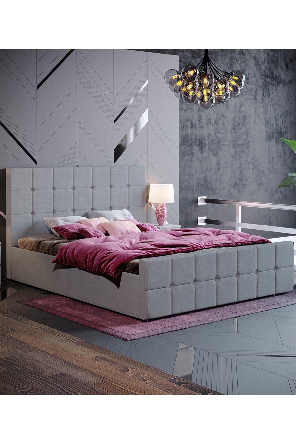 Upholstered King Size Bed | Ottoman Bed Frame | Fabric Bed Frame - Plush & Naple Velvet (Grey Plush Velvet, 4FT6 Double)