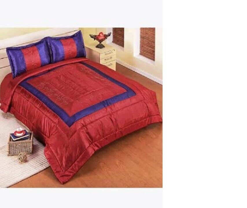 New Embossed Quilted Bedspread & Pillowcases Double King Bed Set Purple burgundy