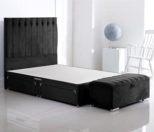 ComfoRest - Elegant 5ft King Divan Bed with 2 Drawers - 54" Luxury Headboard With Ottoman Box - NO MATTRESS INCLUDED - King Size Divan Bed with Storage (Black Plush)