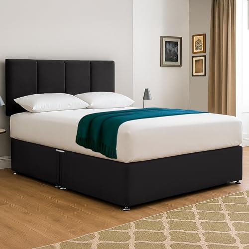 ComfoRest - Sophisticated 6FT Super King Size Bed | Functional Super King Divan Bed for Homes | Durable Beds for Large Interiors | Versatile Bed for Customised Sleeping Needs (Black Plush)