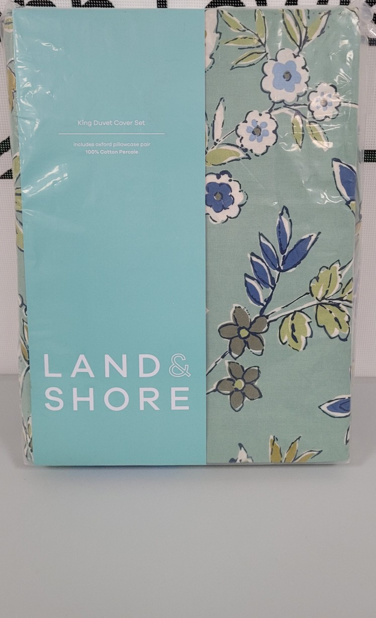 Land Shore Bramble King Duvet Cover Set Green Blue 180TC RRP£90