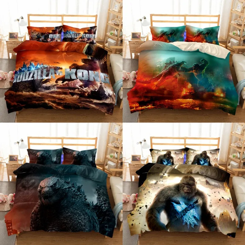 King Kong Vs. Godzilla Anime Harajuku 3D Print Bedding Set Oversized Quilt Cover Pillowcase Bedroom Duvet Cover Kids Bed Linen