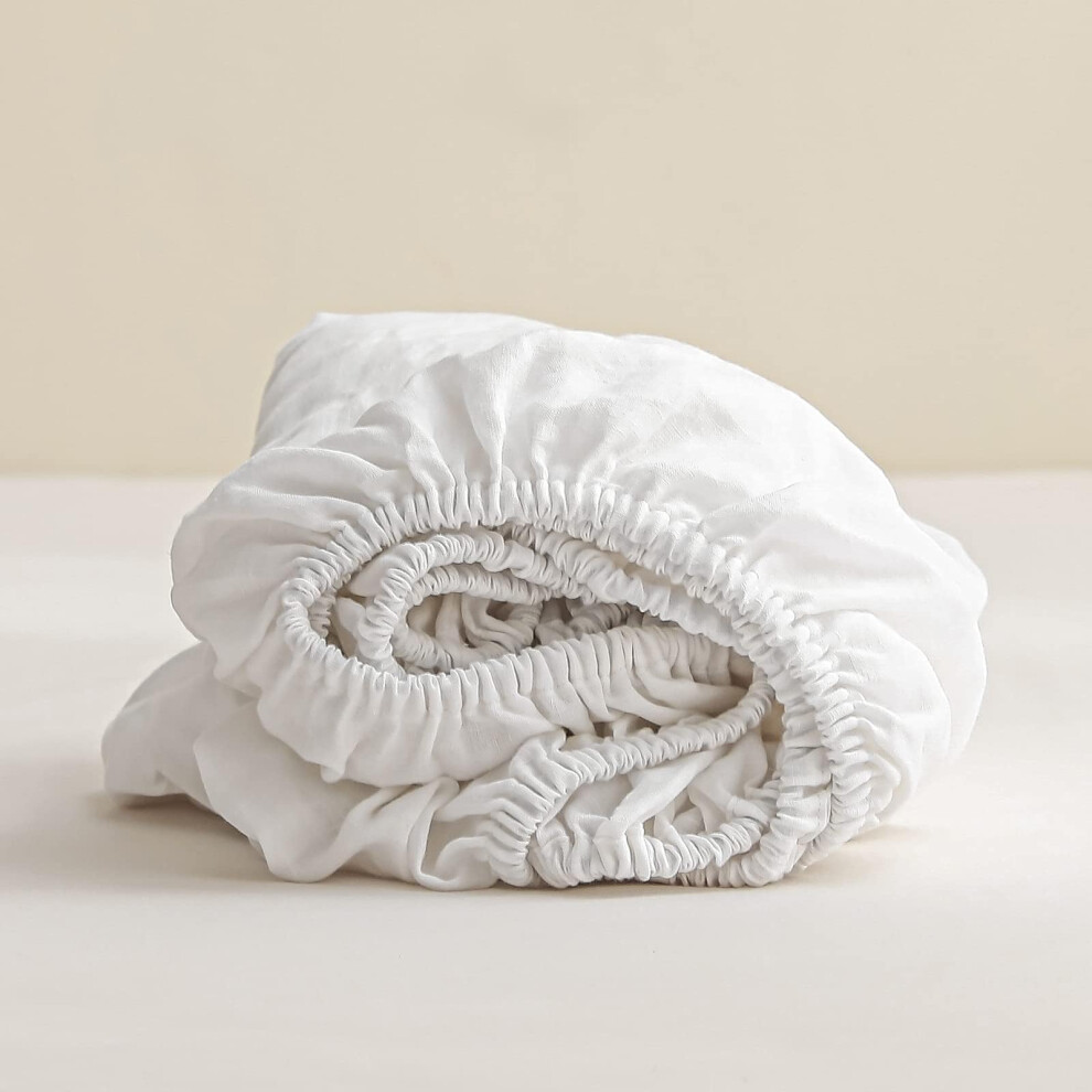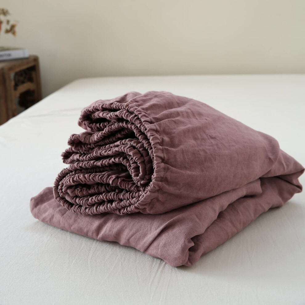 King Linens 100% Linen Fitted Sheet Stone Washed Solid Color - (1 Piece) 14 inch Deep Pocket Mattress Cover Soft Natural Breathable Farmhous