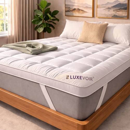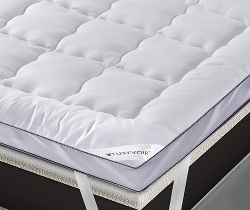 Luxevoir® Mattress Topper Kingsize Bed 4 Inch/10cm – Soft Hotel Quality Hypoallergenic Breathable Quilted King Mattress Topper – Microfiber Mattress Toppers King Elastic Band Up To 40cm (150x200+10cm)