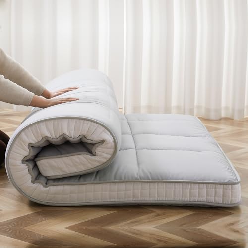 ZIKEBTUY Floor Mattress Japanese Futon King Mattress Topper - 10cm Thick Foldable Tatami Mat Sleeping Bed Pad for Guests, Dormitories, Camping, Sofas & Loungers - Gray, 203 * 153 * 10CM