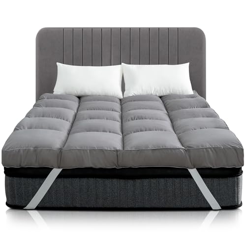 Casabella King Size Mattress Topper 4 Inch (10 cm) Thick Super Soft Breathable Hypoallergenic Mattress Topper Box Stitched with Elasticized Corner Strap