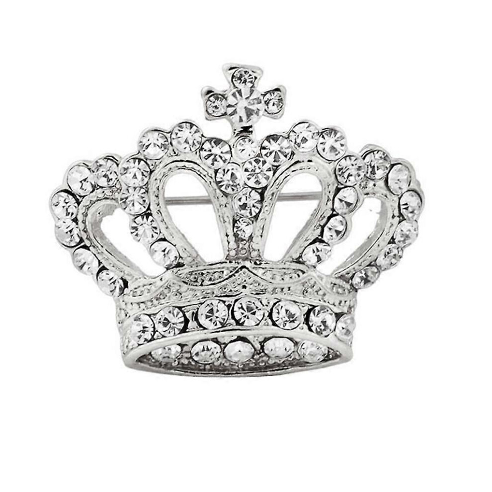 (As show, One size) Boho Victoria King Queen Crown Crystal Brooch Pin Silver Wedding Xmas