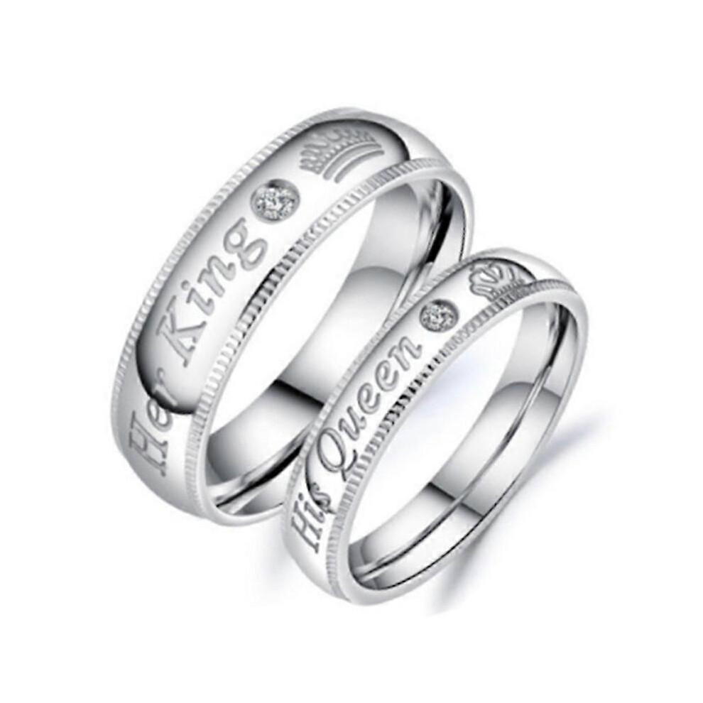 (As show, One size) Her King His Queen Lovers Rings Silver Color Band Adjustable Rings for women