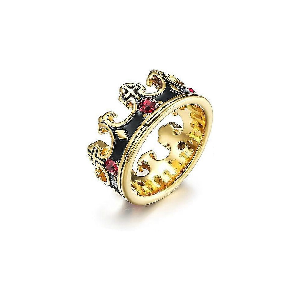 (As show, One size) l King Knight Crown Ring for Men and Boys Religious Cross Chunky Stainless Steel Rings Vintage Christian Rings Wedding Band Silver
