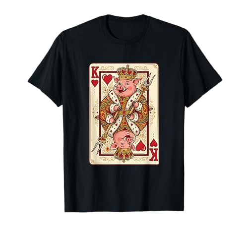 BBQ Grilling Funny Pig King of Hearts Playing Card T-Shirt