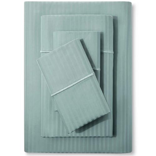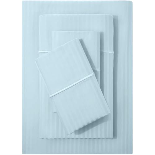 Feather & Stitch King Size Damask Stripe Sheet Set - 4 Piece Set, Ultra Soft 100% Cotton Sheets, 500 Thread Count Luxury Sateen Weave, Deep Pocket Bedsheets, with 2 Pillowcases (King, Aqua)