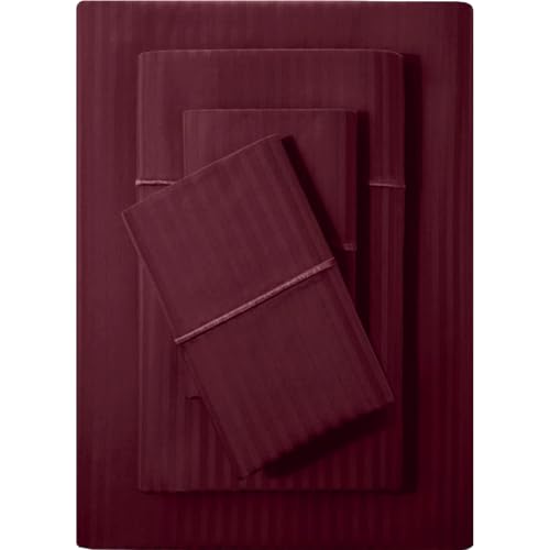 Feather & Stitch King Size Damask Bed Sheets|100% Soft Cotton Breathable BedSheet 4 Pc Set 18" Deep Pockets 500 TC Sateen Weave Striped Bedding Mattress Resort Hotel Luxury Decor|Burgundy
