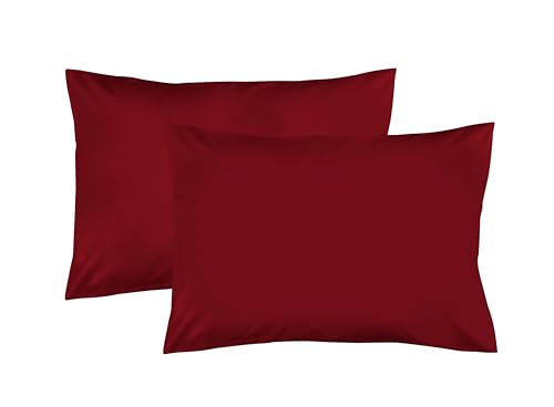 FEATHER & STITCH NEW YORK 100% Cotton 2 Piece King Pillow Cases, 300TC Ultra-Soft Pillowcases with Envelope Closure, Wrinkle- Fade- Stain Resistant - 20x40 inches (King/Pillowcase, Burgundy)