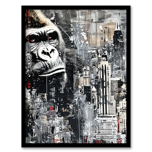 Artery8 King Kong Gorilla New York Skyline Oil Painting Living Room Artwork Framed Wall Art Print 18X24 Inch