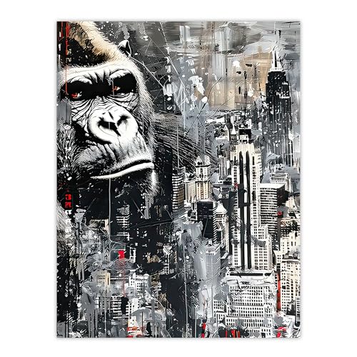 Artery8 King Kong Gorilla New York Skyline Oil Painting Living Room Large Wall Art Poster Print Thick Paper 18X24 Inch