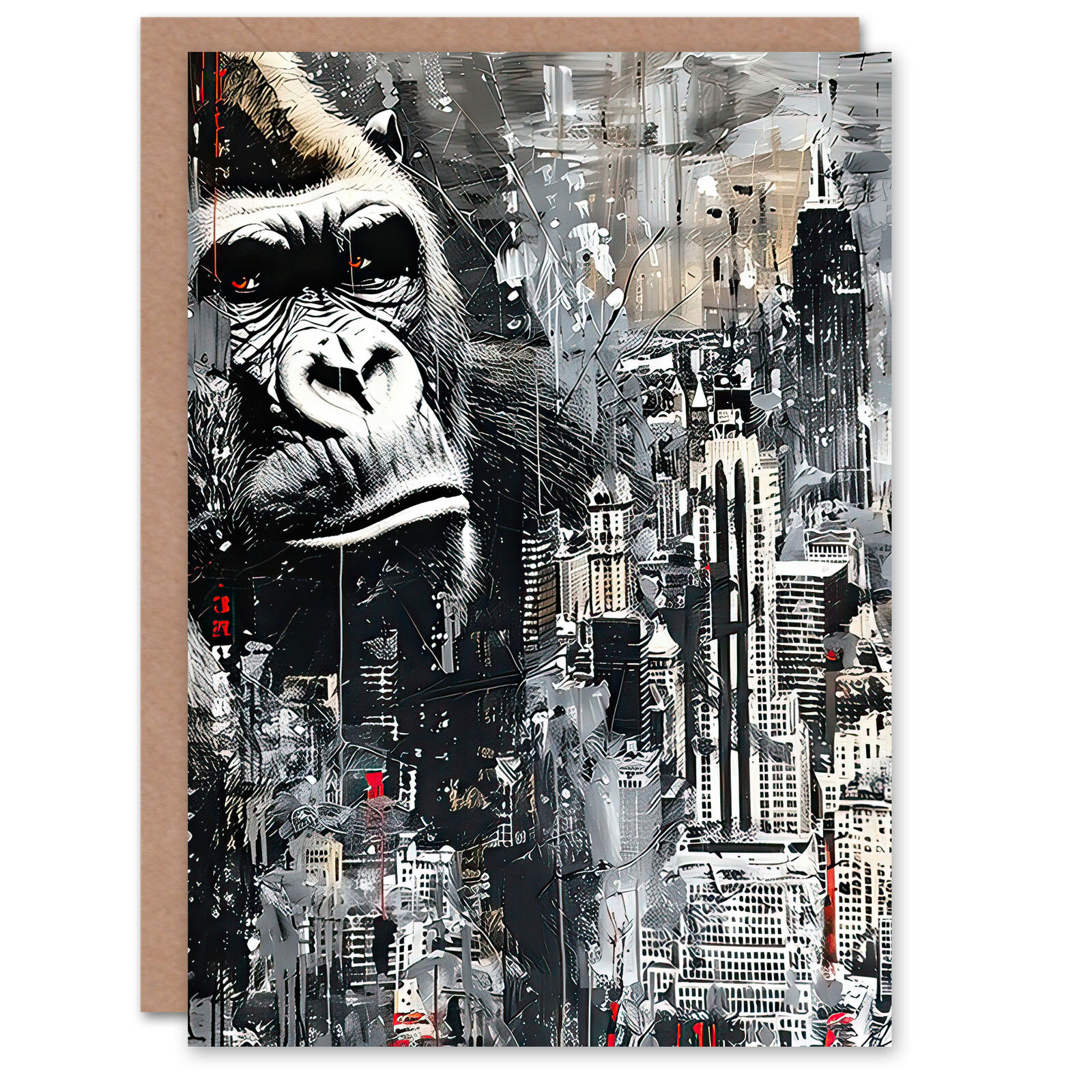 Greeting Card King Kong Gorilla New York Skyline Oil Painting Blank Birthday