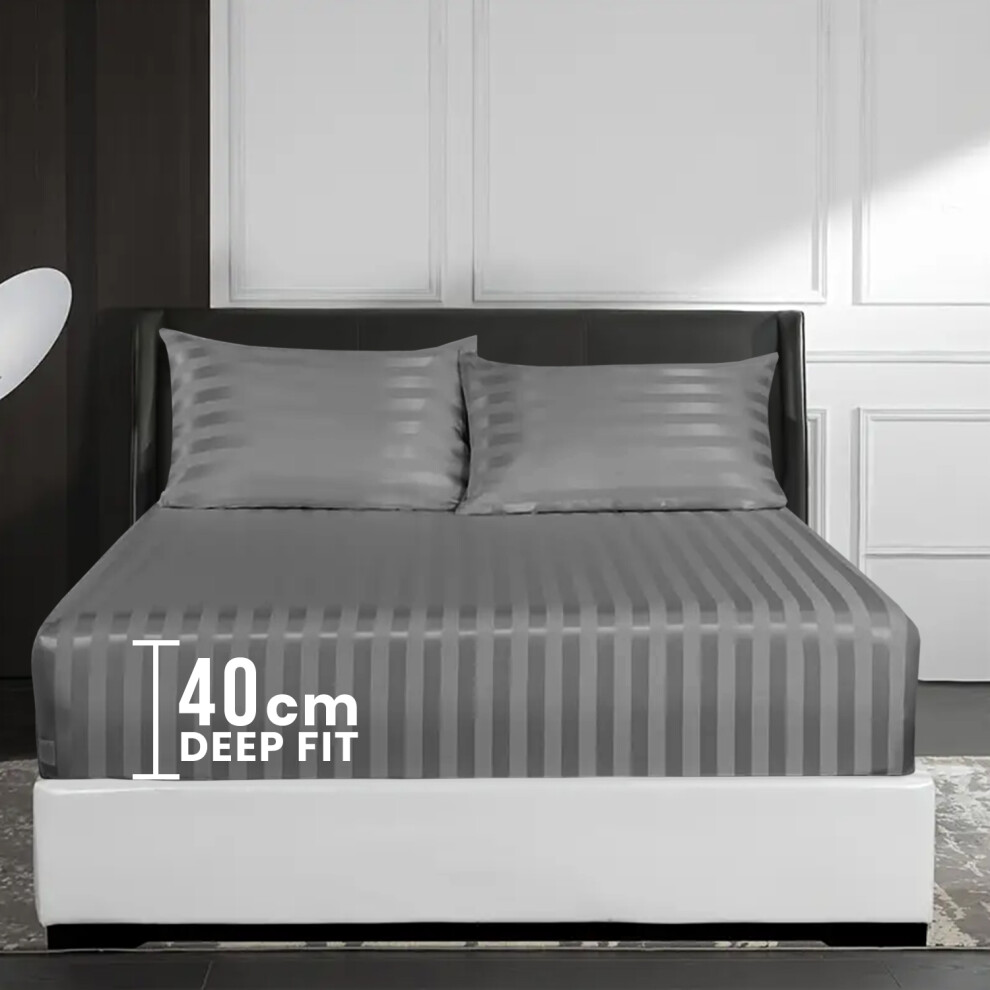 (King Fitted Bed Sheets Pack of 2, Grey) Extra Deep Fitted Sheet 40CM Bed Sheets 2-Pack
