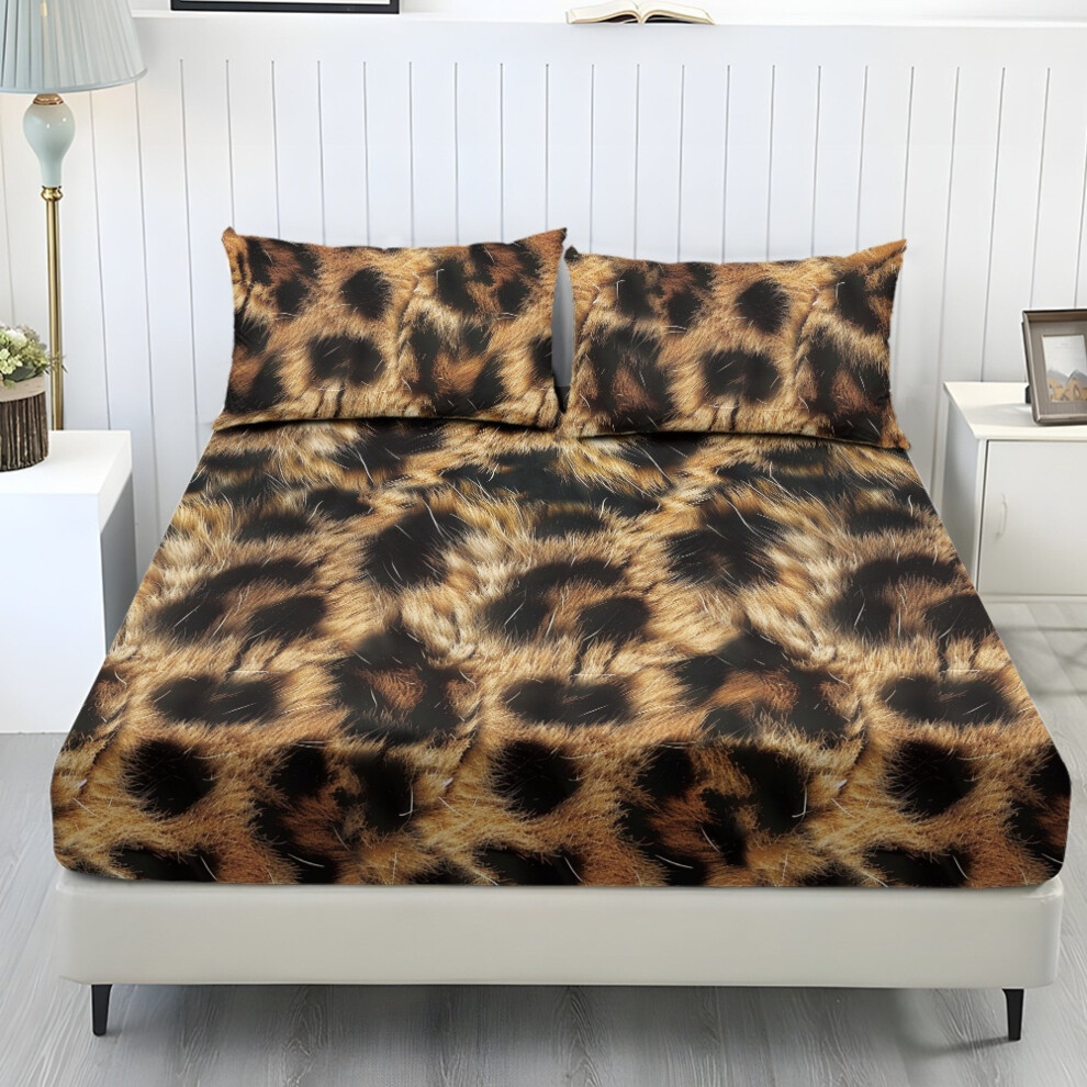 Leopard Printed Soft King Size Polyester Bed Sheets Set of 3 (1 Fitted Sheet + 2 Pillowcases), Breathable & Cozy