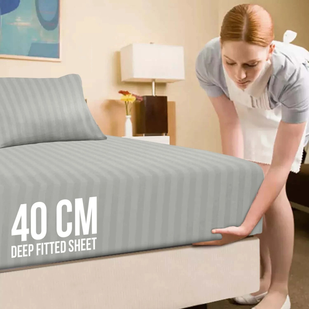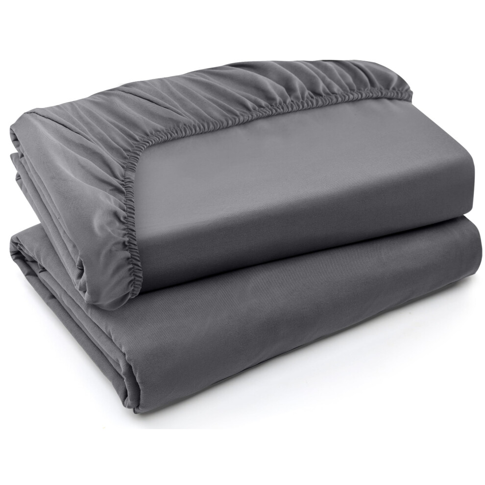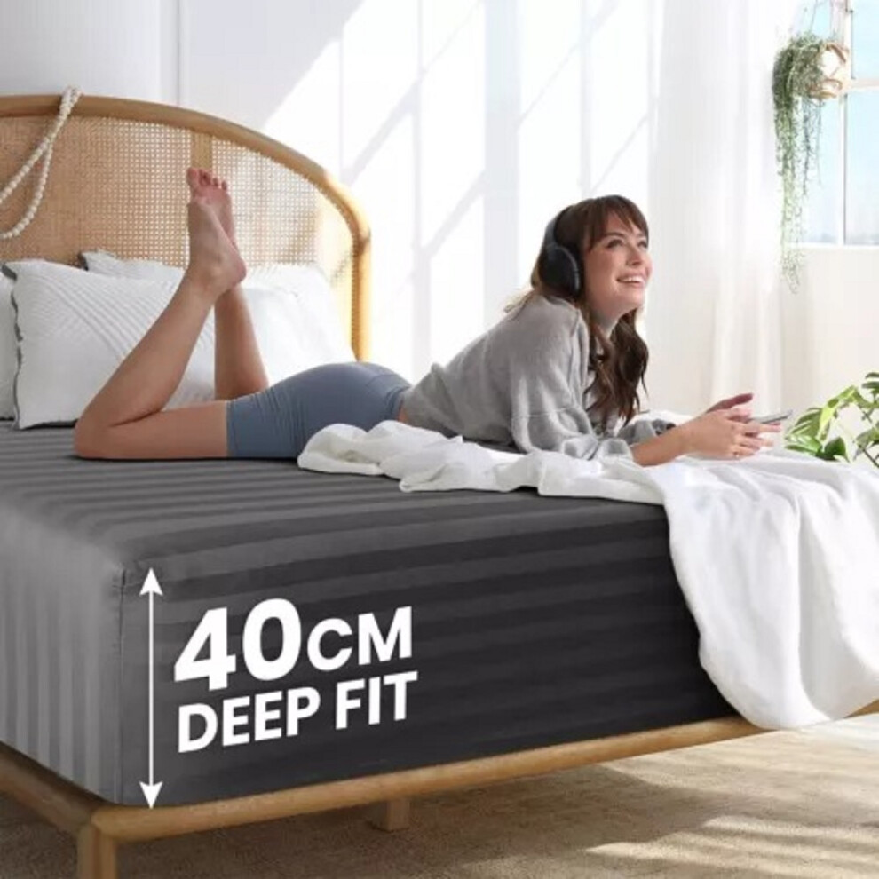 (Super King Fitted Bed Sheets Pack of 2, Grey) Extra Deep Fitted Sheet 40CM Bed Sheets 2-Pack