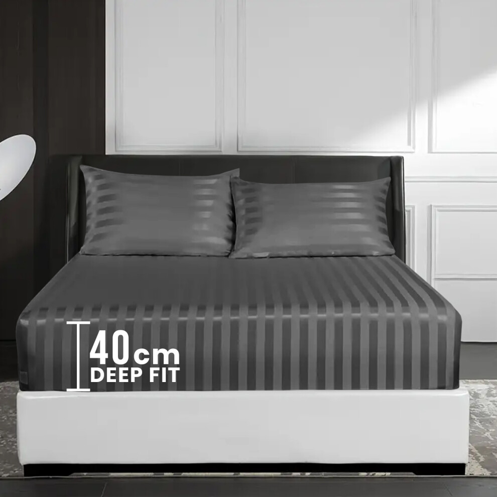 (King Fitted Bed Sheets Pack of 2, Charcoal) Extra Deep Fitted Sheet 40CM Bed Sheets 2-Pack