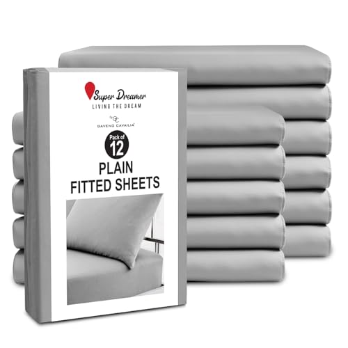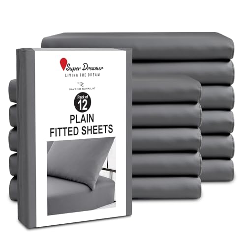 GC GAVENO CAVAILIA King Size Fitted Sheets (152x203cm) - Pack of 12 - Microfiber Plain Dyed Bedding - 25cm Deep Pocket - Soft, Breathable, Wrinkle & Shrink Resistant - Mattress & Bottom Sheet - Grey