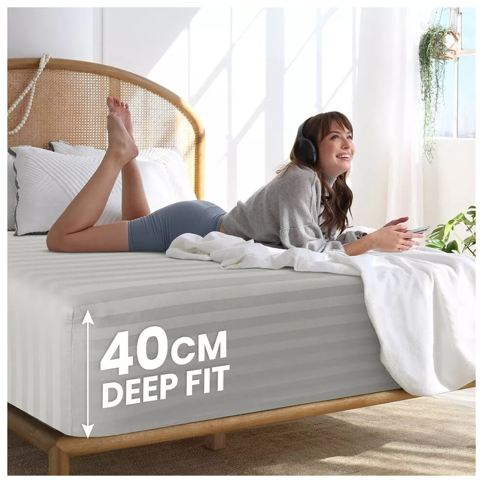 (King Fitted Bed Sheets Pack of 2, Silver) Extra Deep Fitted Sheet 40CM Bed Sheets 2-Pack