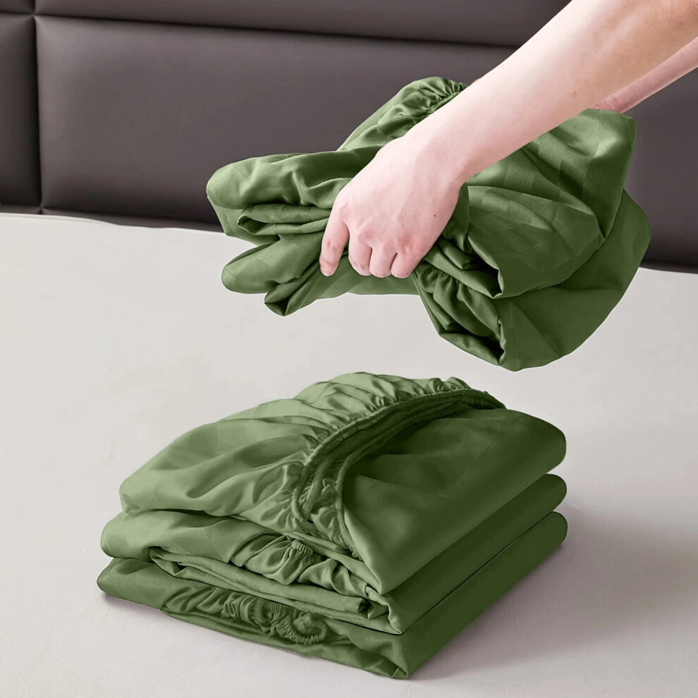DOTBUY-SHOP King Size Fitted Sheets Double Fitted Sheet Solid Colour Bed Sheets Extra Deep Pocket 30 cm Microfiber Milled Double Bed Sheet Soft Fade Resistant (Army green,Single)