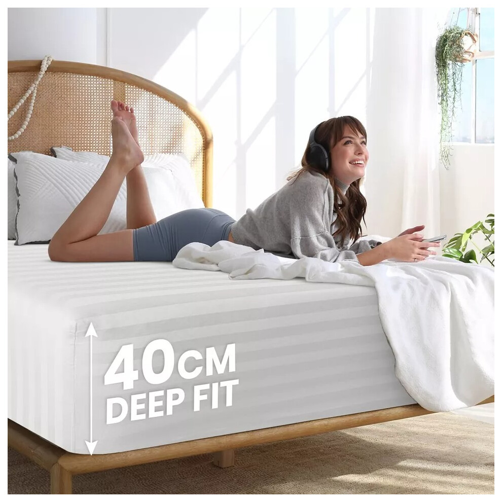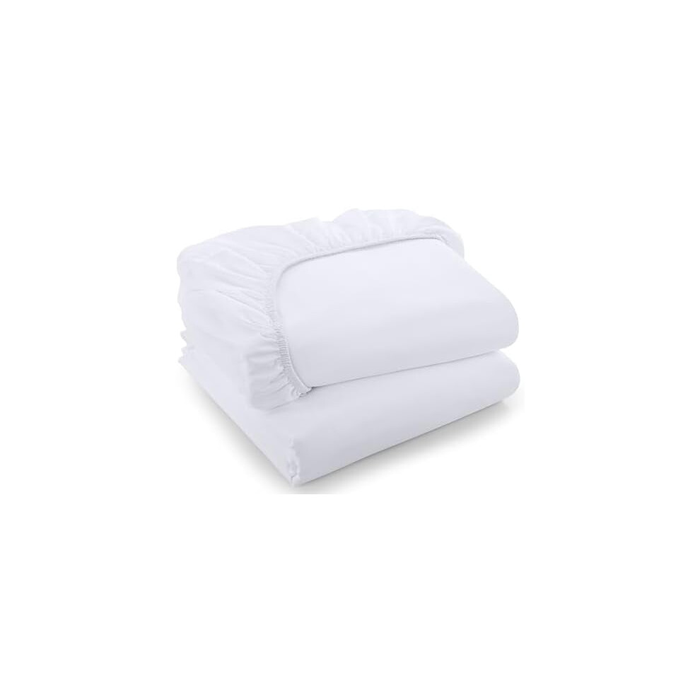 (King Fitted Bed Sheets Pack of 2, White) Extra Deep Fitted Sheet 40CM Bed Sheets 2-Pack