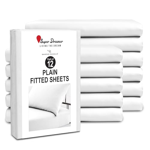 GC GAVENO CAVAILIA King Size Fitted Sheets (152x203cm) - Pack of 12 - Microfiber Plain Dyed Bedding - 25cm Deep Pocket - Breathable, Wrinkle & Shrink Resistant - Easycare Mattress Bottom Sheet - White