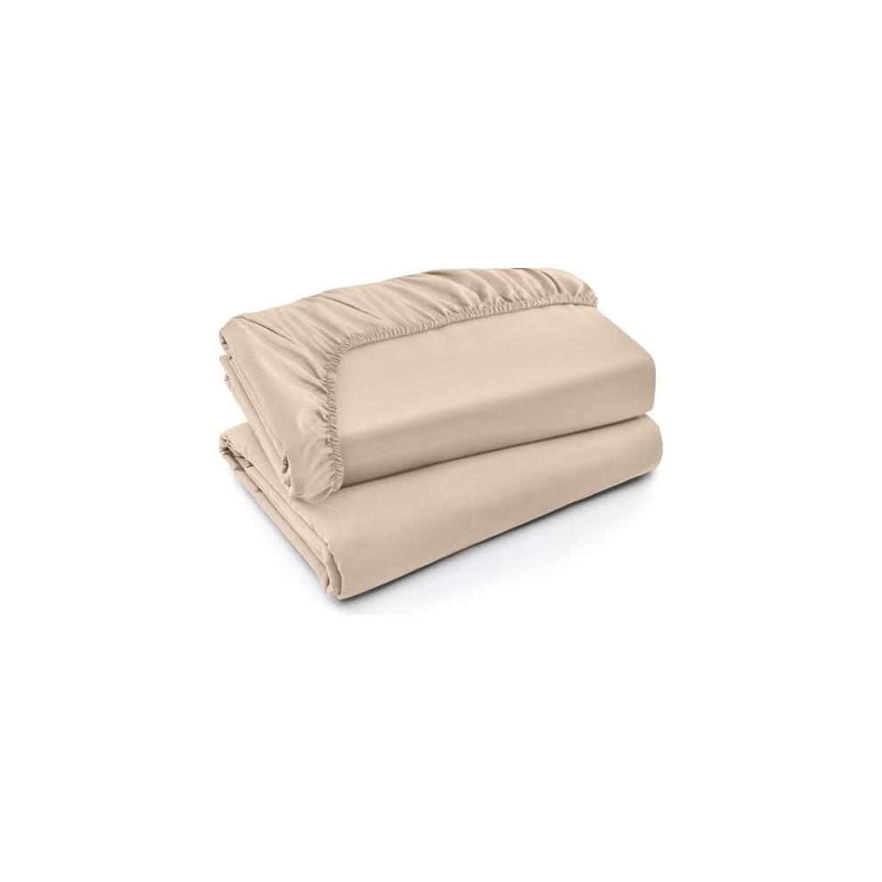 King Fitted Sheets - Bulk Pack of 2 Bottom Sheets - Soft Brushed Microfiber - Deep Pockets - Shrinkage & Fade Resistant - Easy Care (King, Beige)