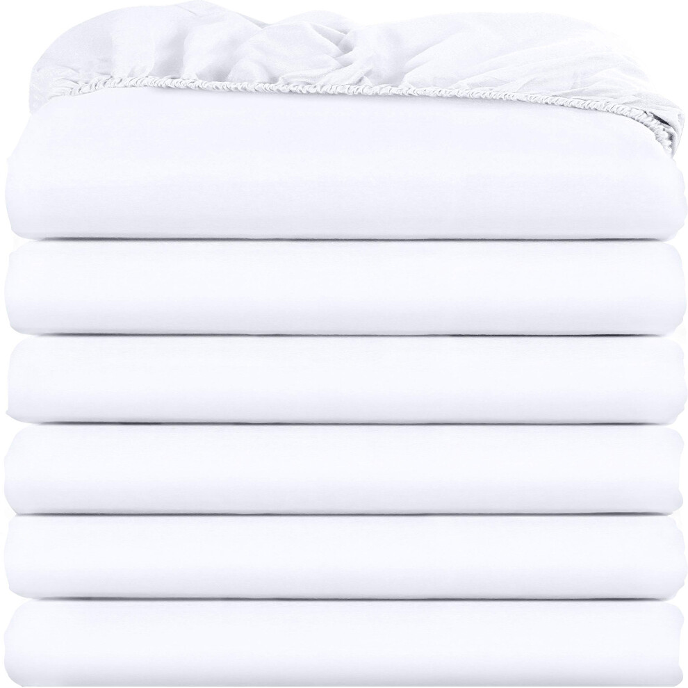 King Fitted Sheets - Bulk Pack of 6 Bottom Sheets - Soft Brushed Microfiber - Deep Pockets - Shrinkage & Fade Resistant - Easy Care (White)