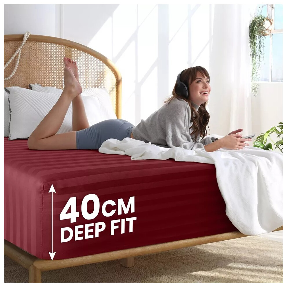 (Super King Fitted Bed Sheets Pack of 2, Red/Burgundy) Extra Deep Fitted Sheet 40CM Bed Sheets 2-Pack