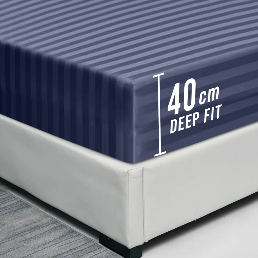 (Super King Fitted Bed Sheets Pack of 2, Navy Blue) Extra Deep Fitted Sheet 40CM Bed Sheets 2-Pack