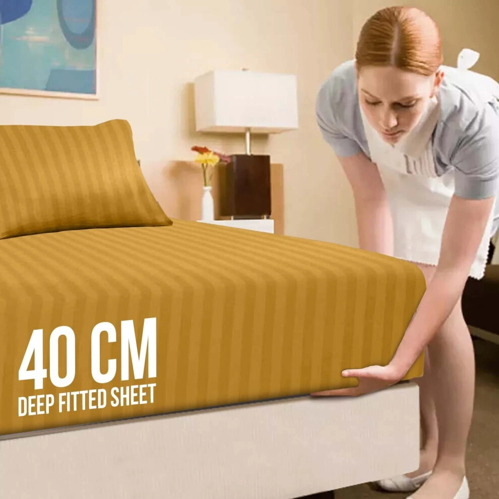 (Super King Fitted Bed Sheets Pack of 2, Ohcre/Yellow) Extra Deep Fitted Sheet 40CM Bed Sheets 2-Pack
