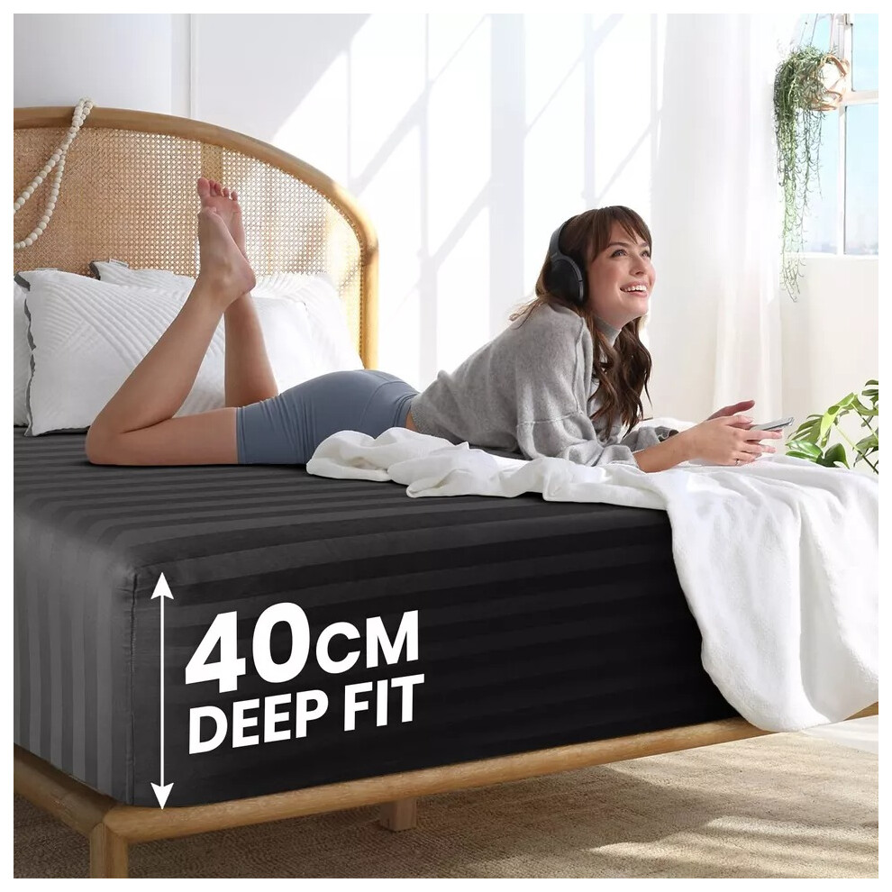 (King Fitted Bed Sheets Pack of 2, Black) Extra Deep Fitted Sheet 40CM Bed Sheets 2-Pack