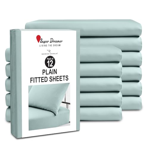 GC GAVENO CAVAILIA King Size Fitted Sheets (152x203cm) - Pack of 12 - Microfiber Plain Dyed Bedding - 25cm Deep Pocket - Soft, Breathable, Wrinkle Shrink Resistant - Mattress & Bottom Sheet - Duck Egg