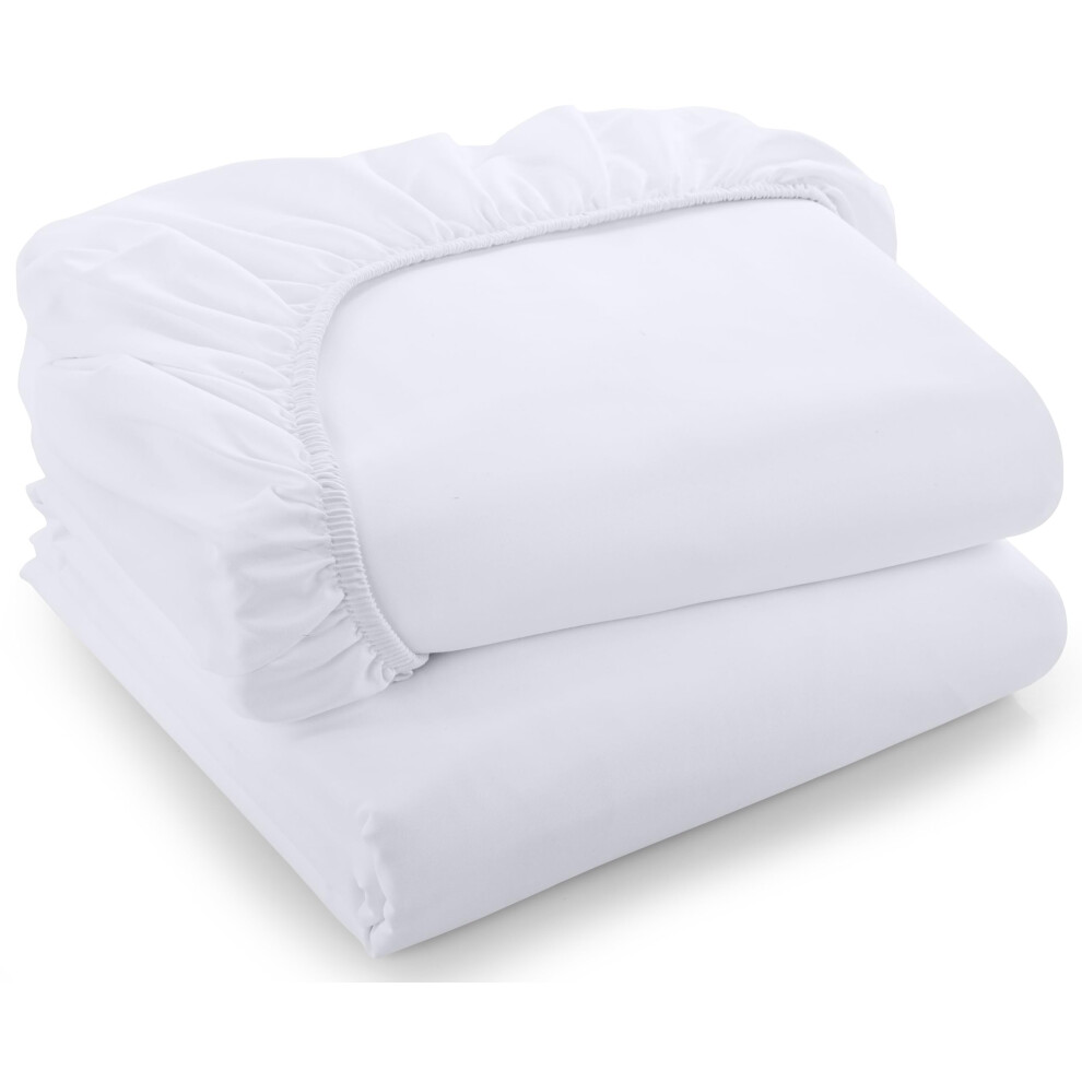 (Super King Fitted Bed Sheets Pack of 2, White) Extra Deep Fitted Sheet 40CM Bed Sheets 2-Pack