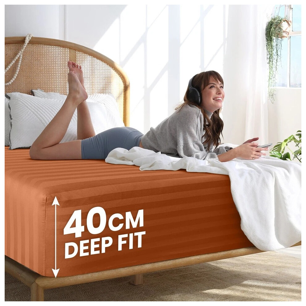 (King Fitted Bed Sheets Pack of 2, Rust) Extra Deep Fitted Sheet 40CM Bed Sheets 2-Pack