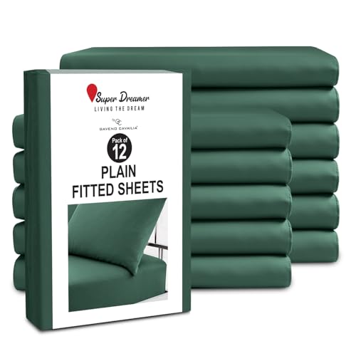 GC GAVENO CAVAILIA King Size Fitted Sheets (152x203cm) - Pack of 12 - Microfiber Plain Dyed Bedding - 25cm Deep Pocket - Breathable, Wrinkle & Shrink Resistant - Mattress & Bottom Sheet - Dark Green