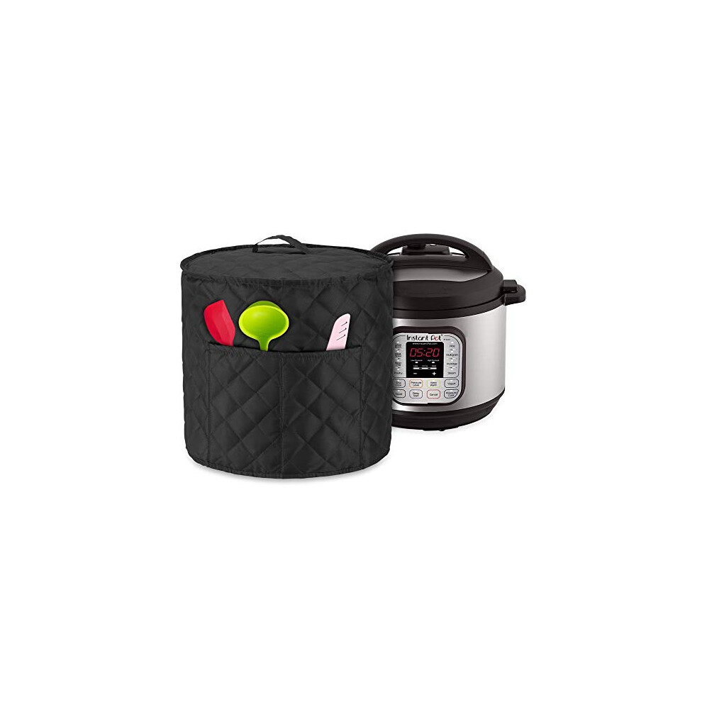 Dust Cover for Instant Pot Duo 6 Litre, Cover with Pockets for Pressure King Pro 6 Litre and Extra Accessories, Quilted Black