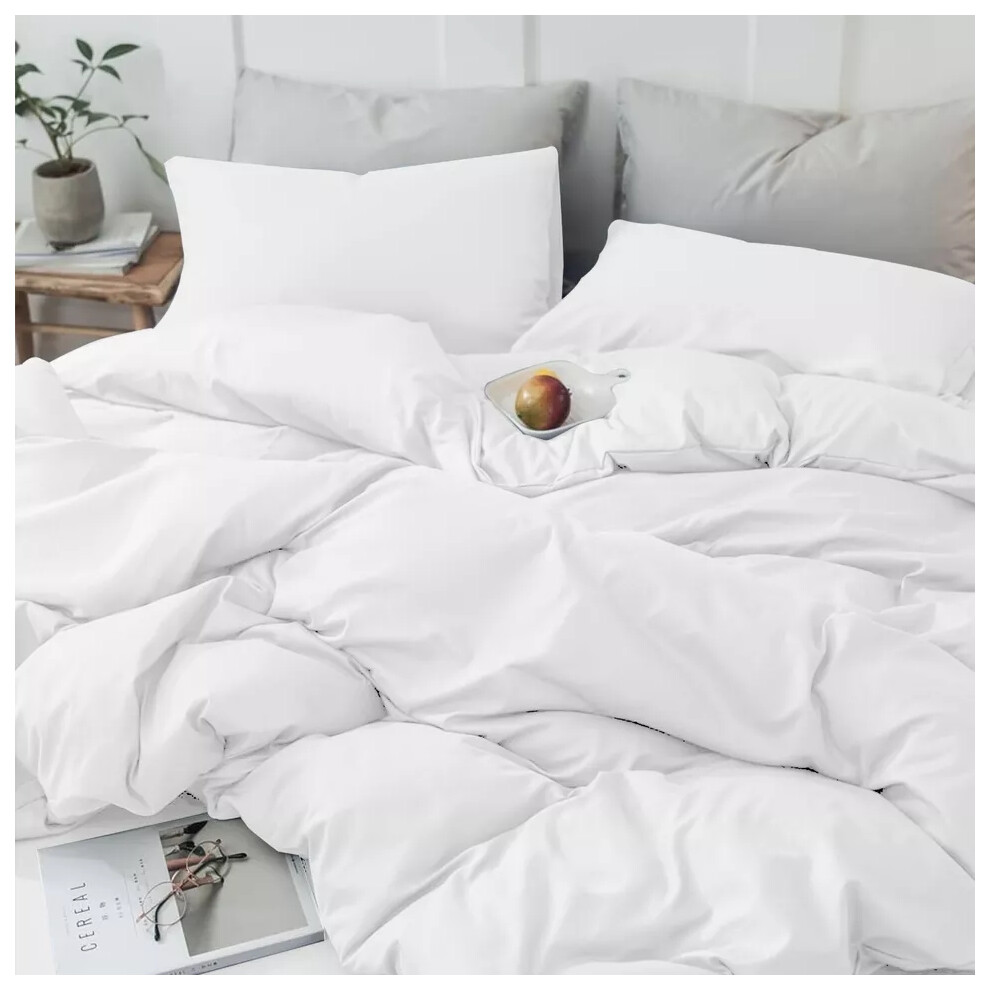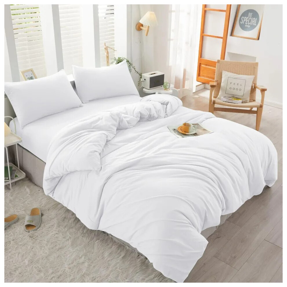 (White, Super King Size Set) 4PC Dyed Duvet Cover Bedding Set with Fitted Sheet