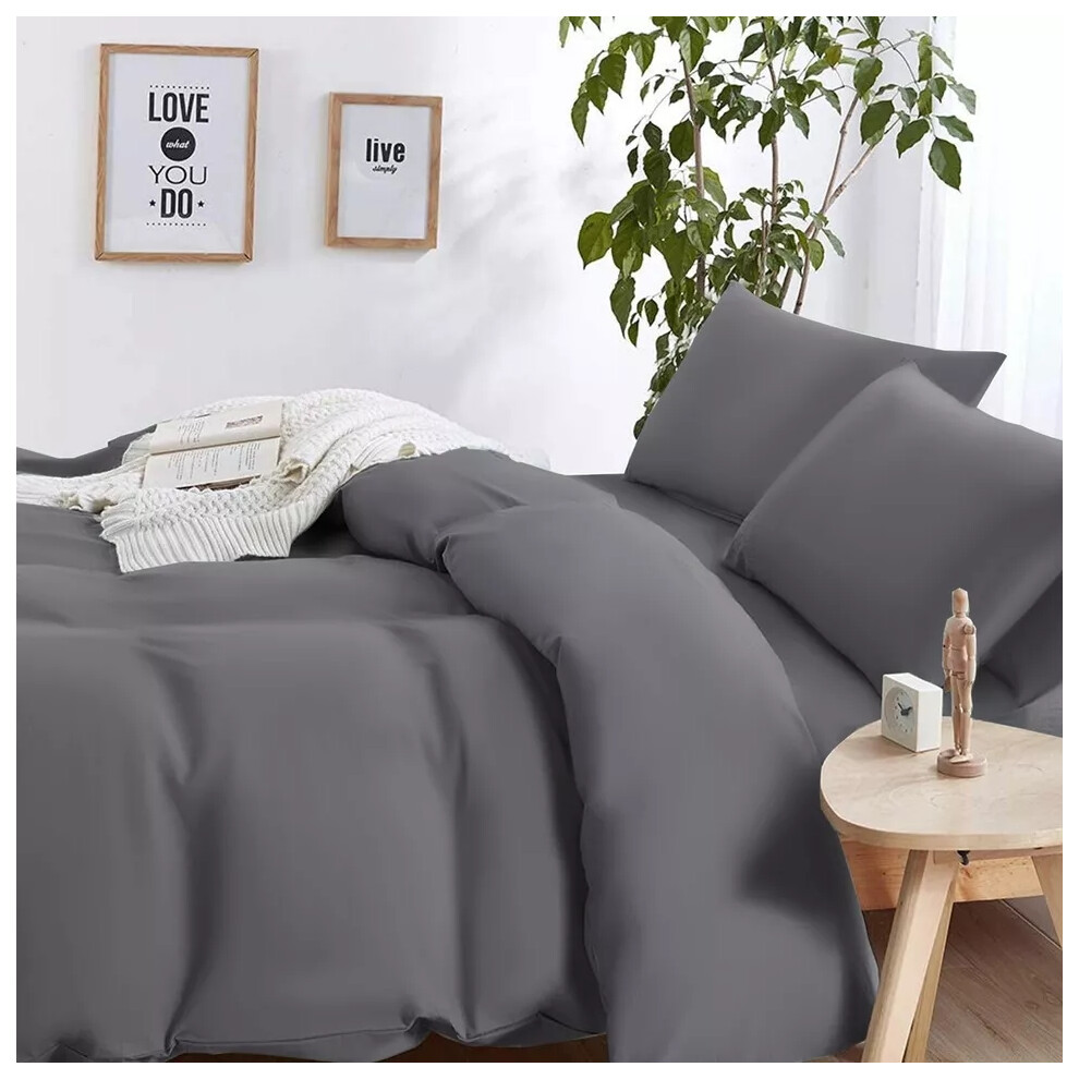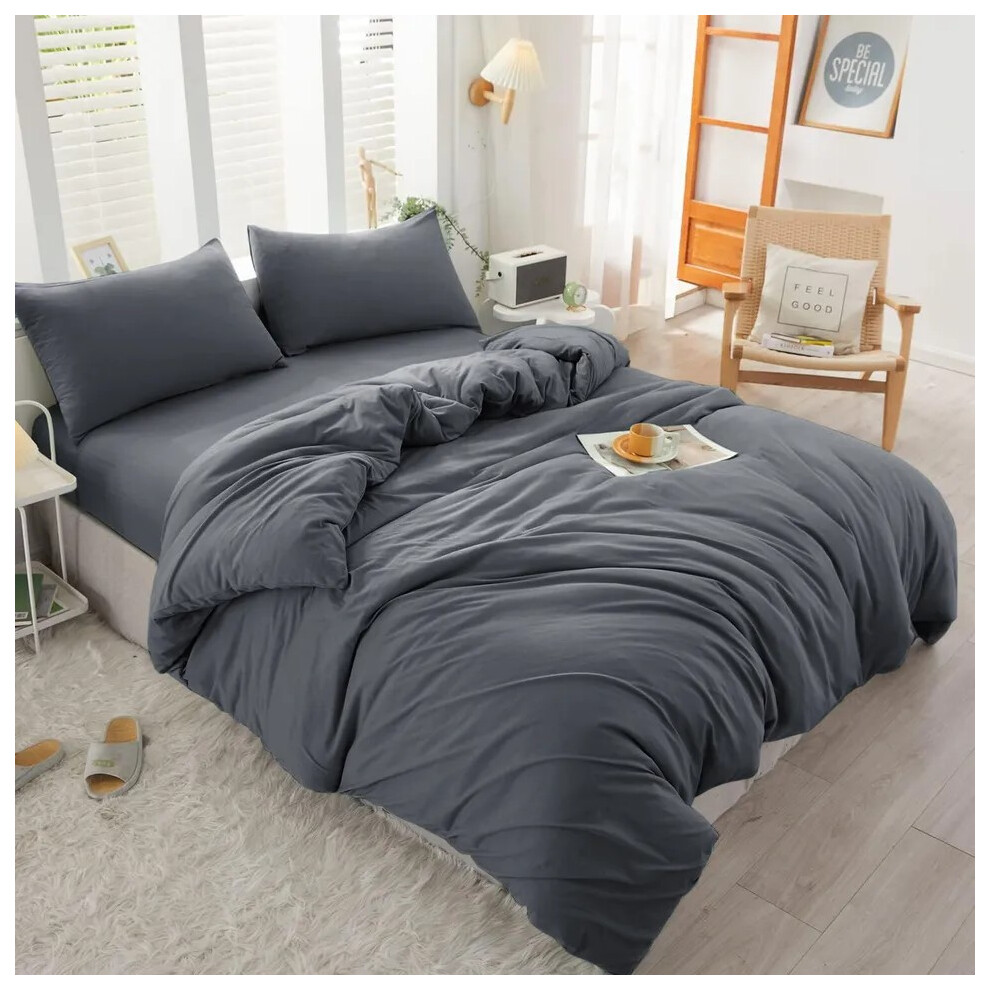 (Charcoal, Super King Size Set) 4PC Dyed Duvet Cover Bedding Set with Fitted Sheet