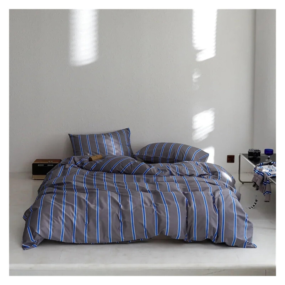 Bed Sheets Set Cotton Grey Blue Stripes Duvet Cover Set, Queen/King Size Bedding With Fitted Sheet And Pillowcases