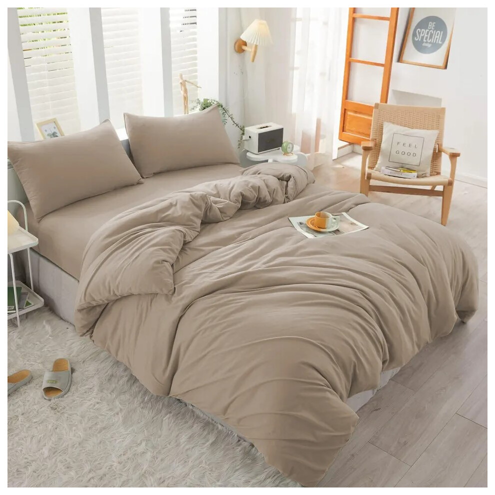 (Beige, Super King Size Set) 4PC Dyed Duvet Cover Bedding Set with Fitted Sheet