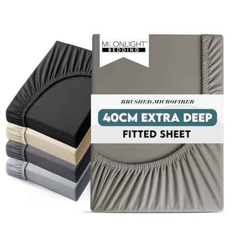 Moonlight Bedding King Size Fitted Sheets 40 Cm Extra Deep Pocket Grey Bed Sheets 16 inch Ultra Soft Bottom Sheet Brushed Microfiber Breathable Shrinkage and Fade Resistant