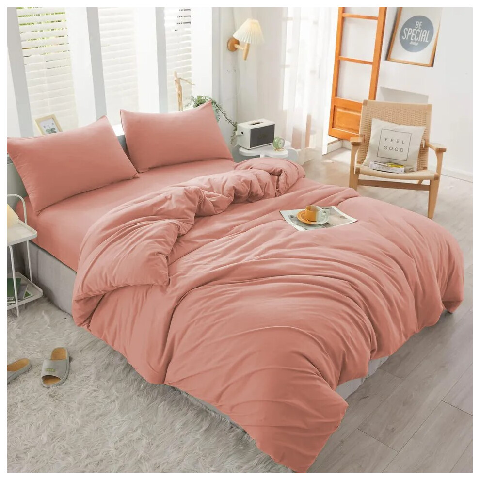 (Peach, Super King Size Set) 4PC Dyed Duvet Cover Bedding Set with Fitted Sheet