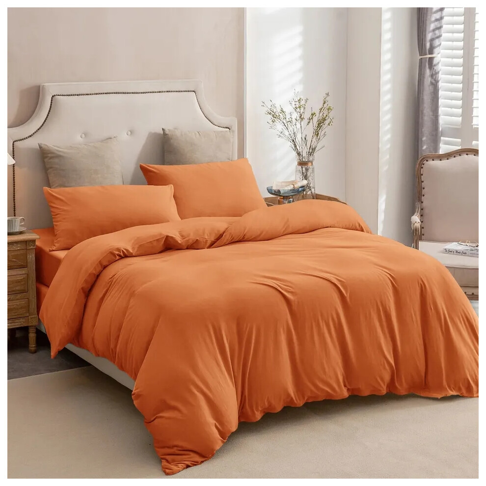 (Rust, King Size Set) 4PC Dyed Duvet Cover Bedding Set with Fitted Sheet